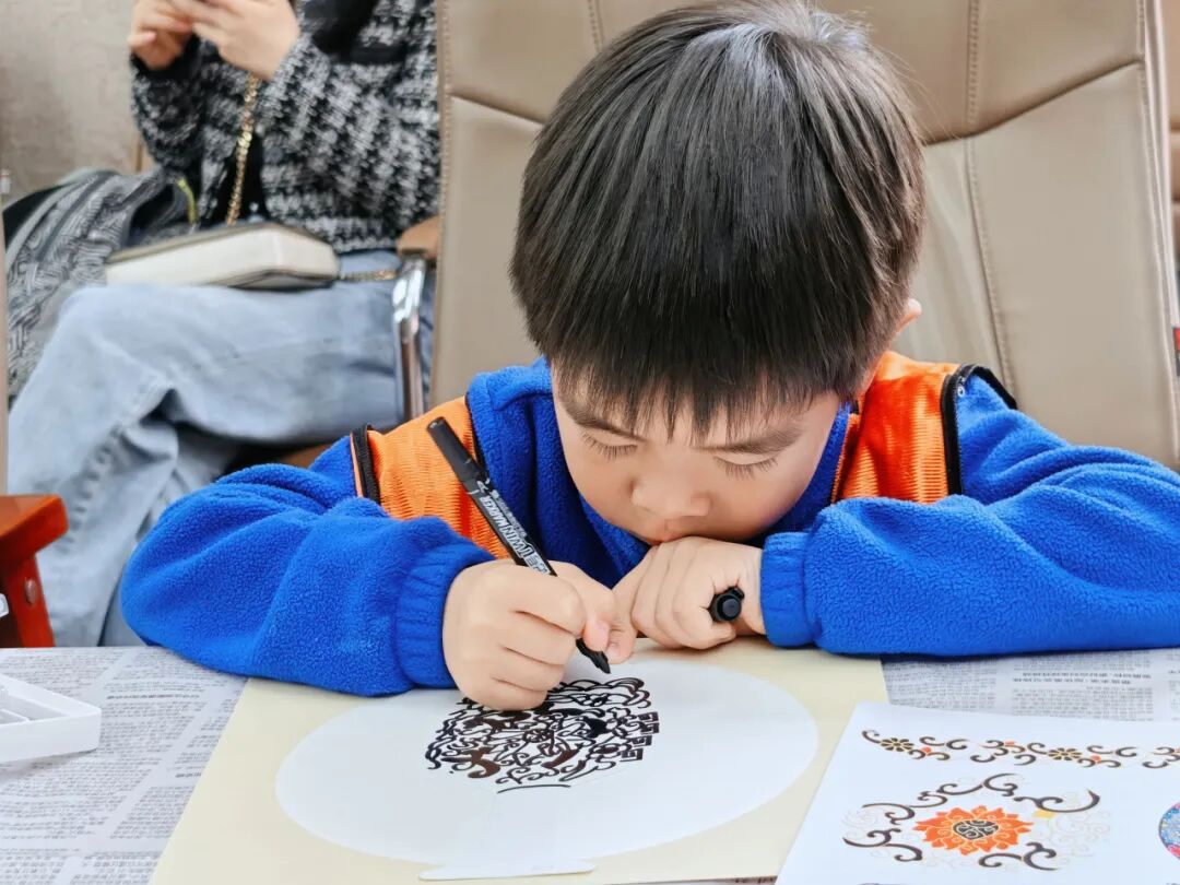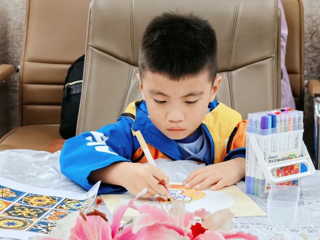 体验完点彩技艺,孩子们拿起画笔,开始了艺术创作之旅。他们以刚才的所见所感为灵感,在画纸上描绘心中的景泰蓝。有的孩子细致地临摹展厅中精美的景泰蓝花瓶,将繁复的花纹和绚丽的色彩一一还原等。画笔在纸上穿梭,线条与色彩交织,每一幅画作都饱含着孩子们对景泰蓝的理解与热爱,也让非遗文化在他们的笔下焕发出了全新的生机与活力。