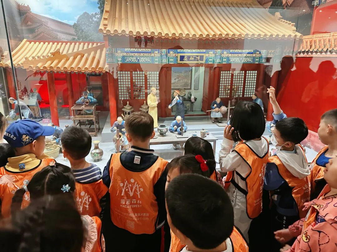 孩子们踮起脚尖,目不转睛地观察着,时不时小声发出 “哇” 的惊叹,让孩子们亲眼见证了一块块普通的铜片,如何在匠人的手中,一步步蜕变为精美绝伦的景泰蓝工艺品,对这门古老技艺的精湛工艺有了更直观的认识。