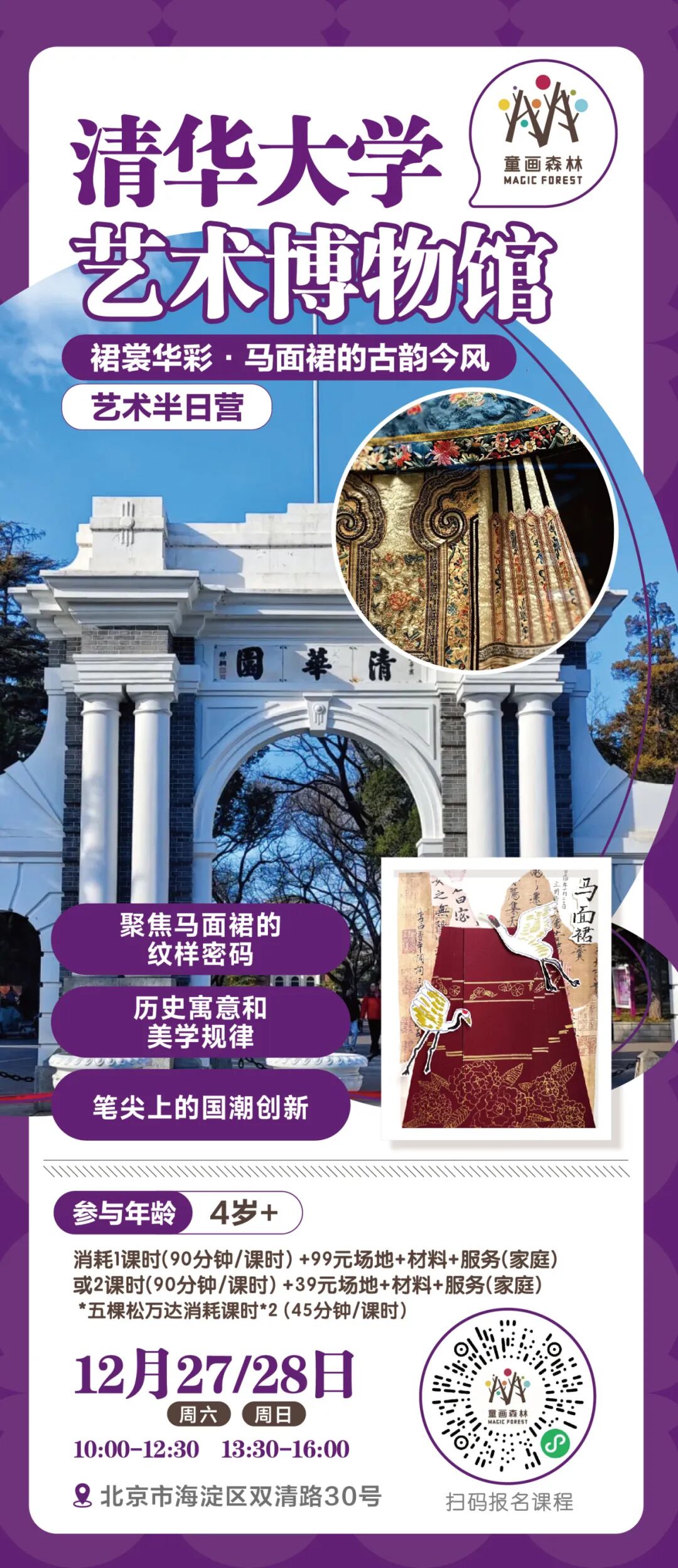 走进清华艺博,聚焦传统文化瑰宝——马面裙:解读纹样中的密码,理解其历史寓意与美学规律;在老师引导下,开展 “笔尖上的国潮”创新设计;让孩子们在古典与现代的对话中,树立文化自信。
